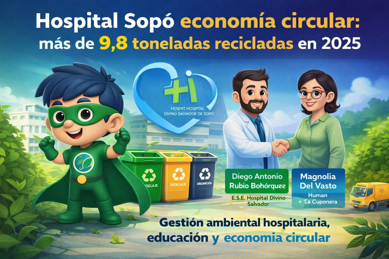 E.S.E Hospital Divino Salvador de SopĂł y sus sedes adscritas; La calera y Tocancipáes se suman a practicas sostenibles, una realidad medible y replicable. Hoy se consolida como referente regional en gestiĂłn ambiental hospitalaria, tras recuperar y gestionar de manera responsable más de 30 toneladas de residuos durante 2025, integrando reciclaje, educaciĂłn ambiental y economĂa circular.